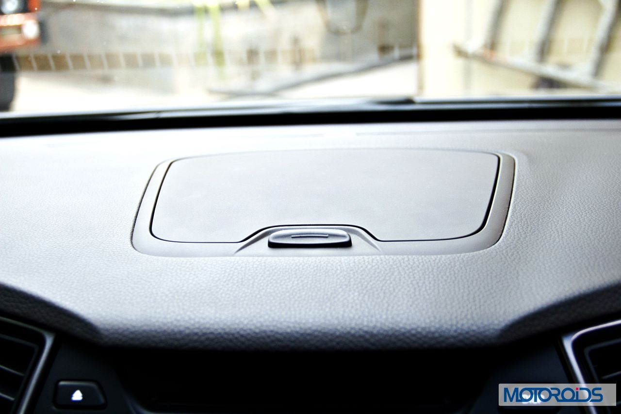 Right before the armrest you have a small crevice, which, again is good to accommodate a wallet or a cellphone. Further ahead, you have two big cupholders. Further ahead, you have another recess big enough to handle a wallet and a cell-phone together. And if you’re one of those perennial whiners, then you have another compartment with a push to op lid on top of the dashboard. For those who’d still not be satisfied, there is a roof mounted glares compartment.