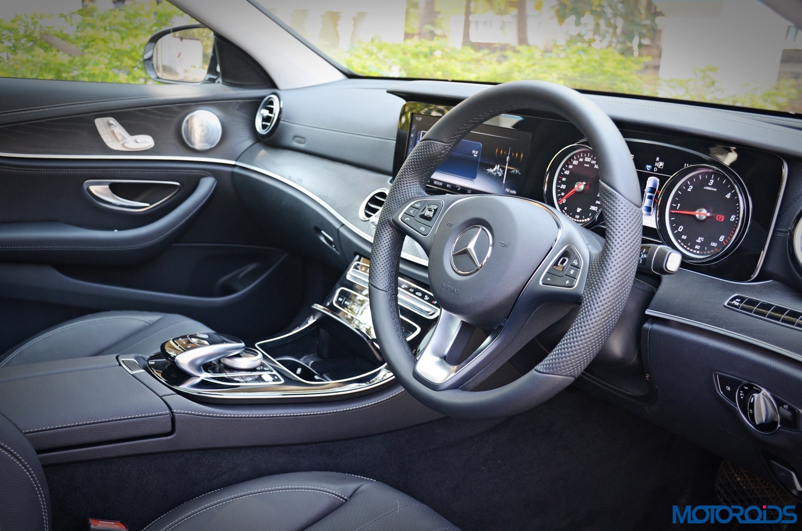The steering for instance. It would otherwise be called lifeless and something which gives you no feedback of what lies beneath. In the E-Class though, I like the isolated nature of that wheel and how it fits in right with the what the car tries to achieve. Then there’s the air suspension which largely isolates the cabin from what the rather healthily profiled run flat tyres have to deal with, except bigger bumps and undulations which are felt through, as the built for Europe equipment fights hard with the kind of surfaces India has to offer. It makes the car glide like a flying mat on good roads though. There’s a switch which increases ride height by 15mm from the standard 120mm clearance, which made the car drive over fairly tall humps without creating a 5th contact patch.