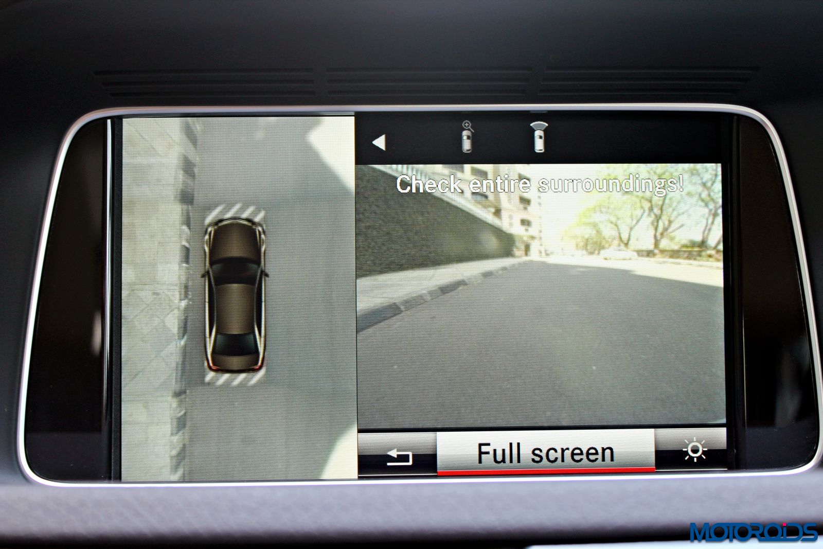 Engage the reverse gear and you get a top view of the car courtesy cameras all around