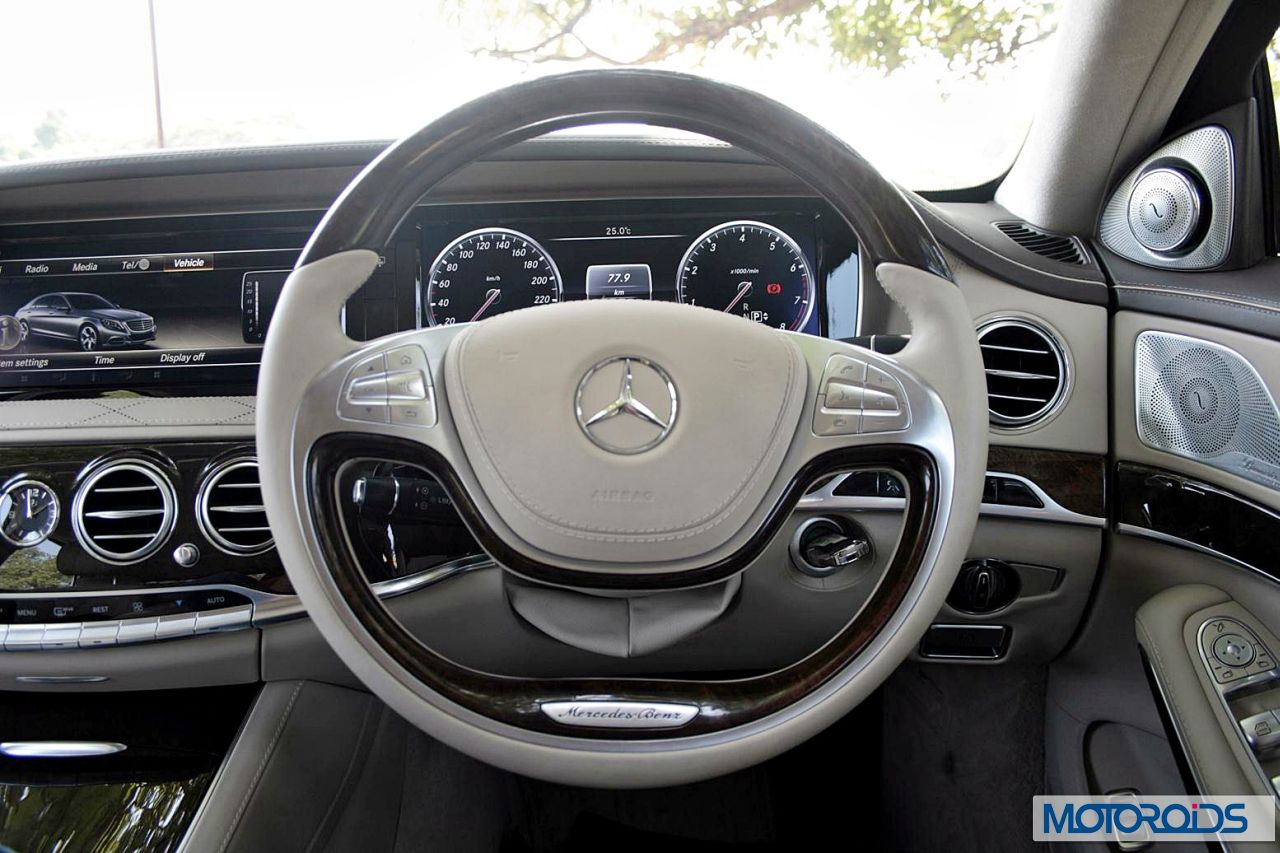 Let’s start with the engine. The S500 we drove is propelled by a 4.7 liter 8-Cylinder V-engine. There are 459 horses on tap between 5250-5500 rpm, along with 700 Nm of torque between 1800 and 3500 rpm. And the engine, with relatively longer ratios, has been mellowed down a little to ensure buttery smooth, jerk-free, silent power delivery. Capable of hurling this 2 ton contraption to 100 km/h from a standstill in just 4.8 seconds, that mighty engine never acts rude. The silken smooth 7G-TRONIC Plus transmission also has to play an important role in all those gentlemanly traits collectively exhibited by the engine-tranny package. Real world fuel efficiency varies from 5 to 7 kmpl depending on the amount of lead in your right foot.