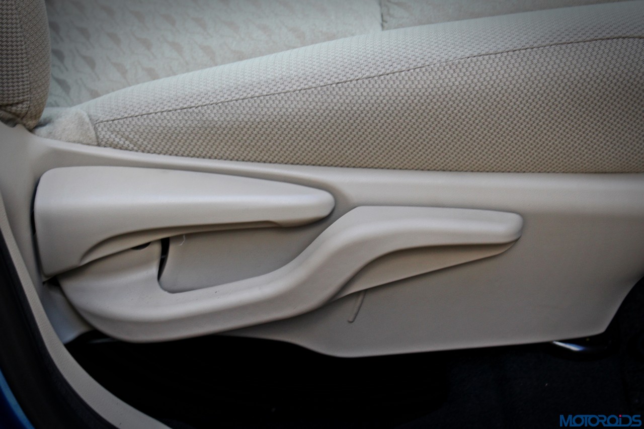 The flat-bottomed, leather trimmed steering wheel is a nice touch. It always feels good when a nice, chunky rim rubs against your palms, and the Liva doesn’t disappoint in this aspect. The controls on the steering are trimmed to a minimum, with just the volume adjust. mode and skip buttons. The top-end VX grade has all the essential features like power windows, key-less entry with remote locking, air-conditioning, and powered mirrors in place, but their controls and knobs have an utilitarian look and feel.