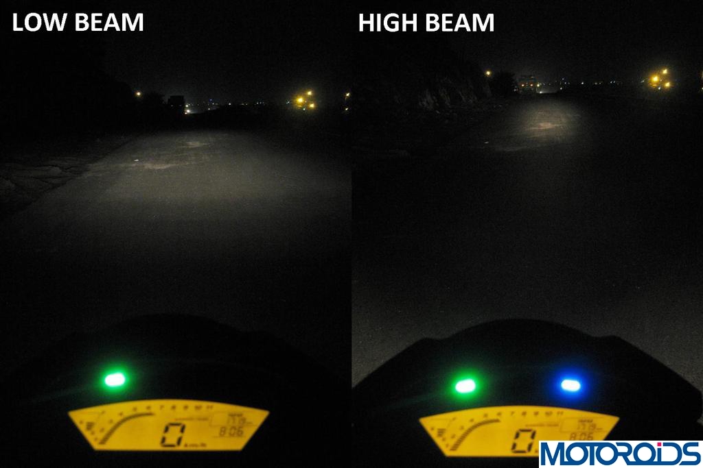 The Honda Streetfire inspired headlight provides ample low beam spread during the night but somewhat loses out on high beam performance. The clear lens turn blinkers are different in design from the Dazzler and do their job reasonably well.