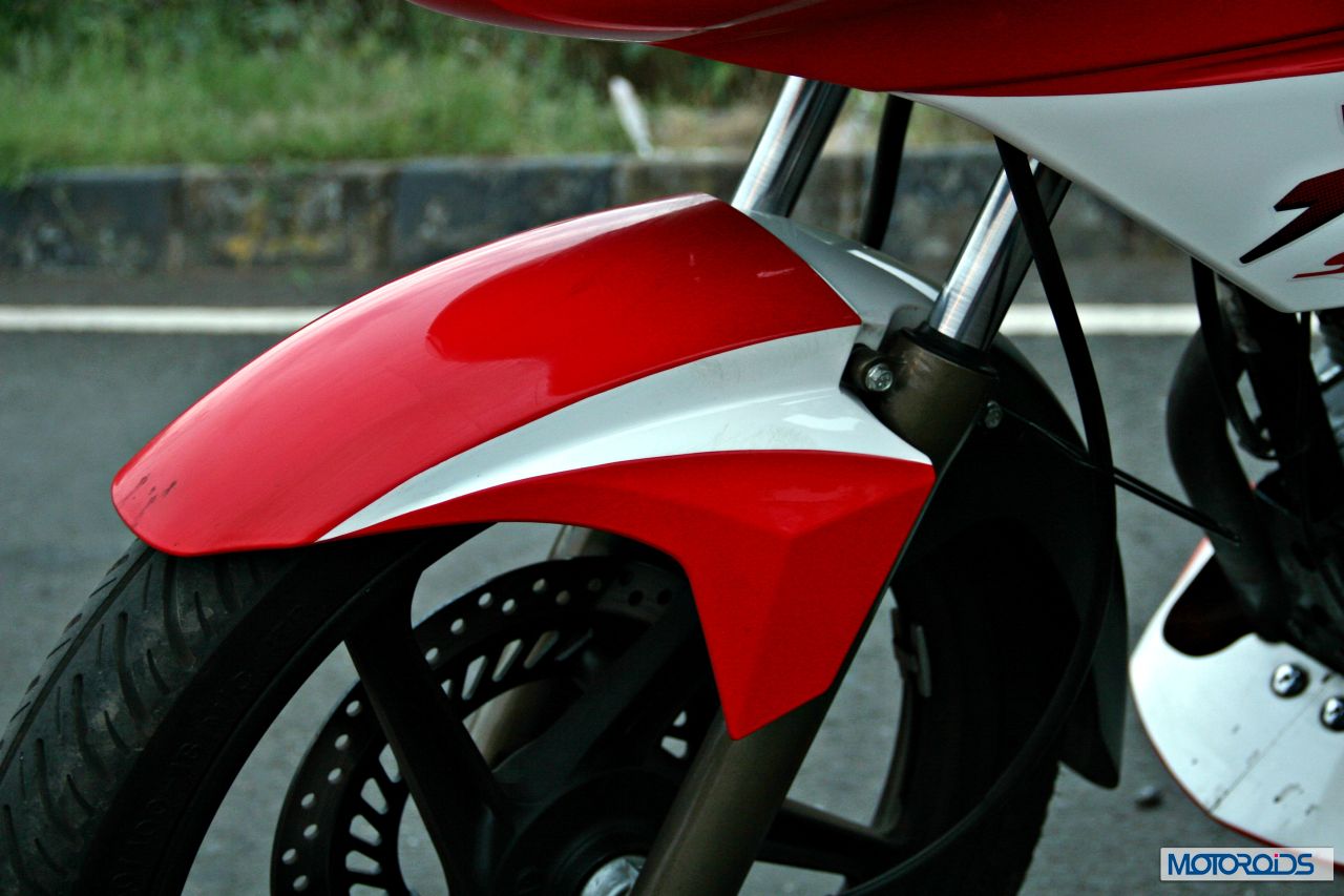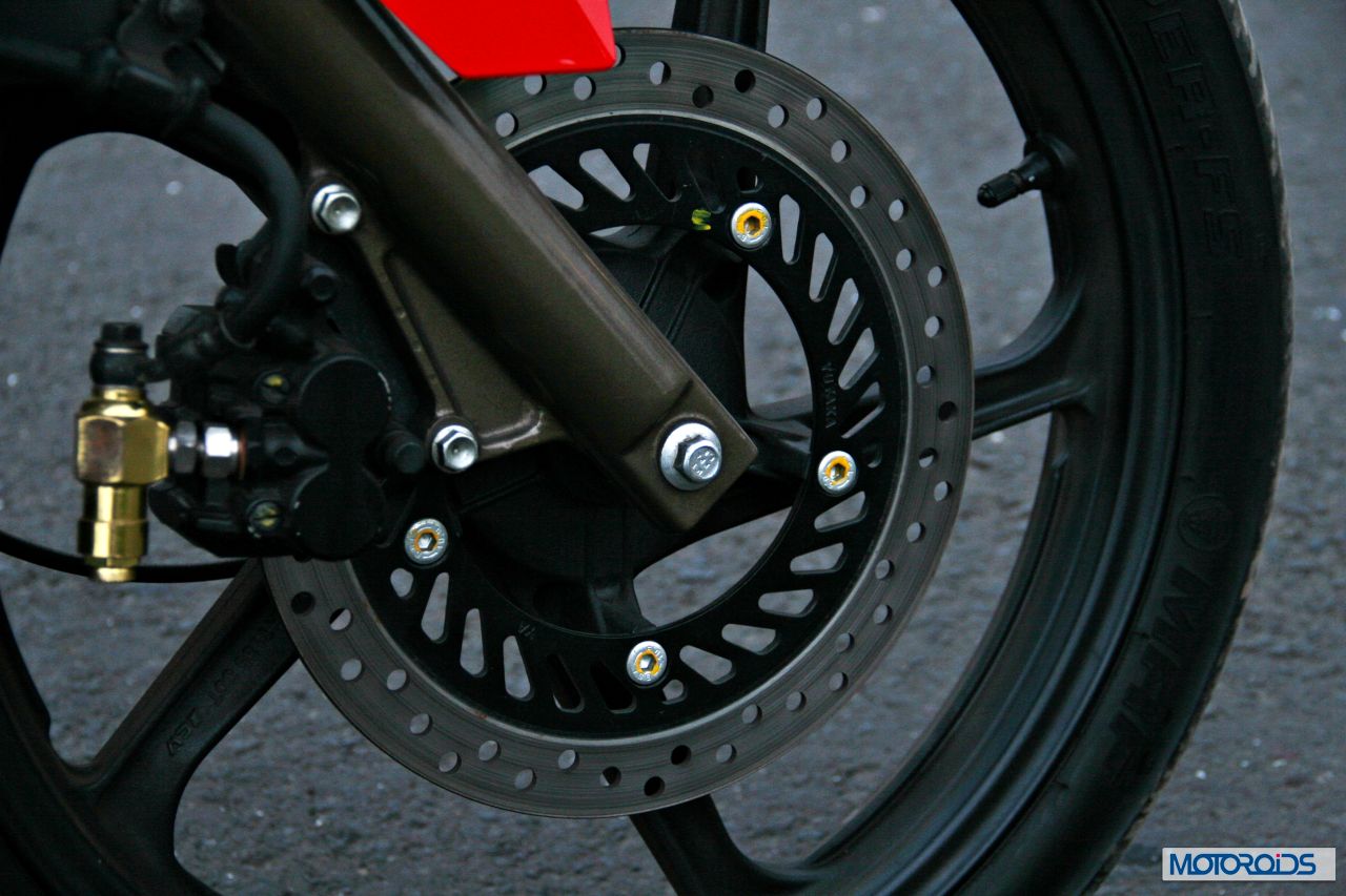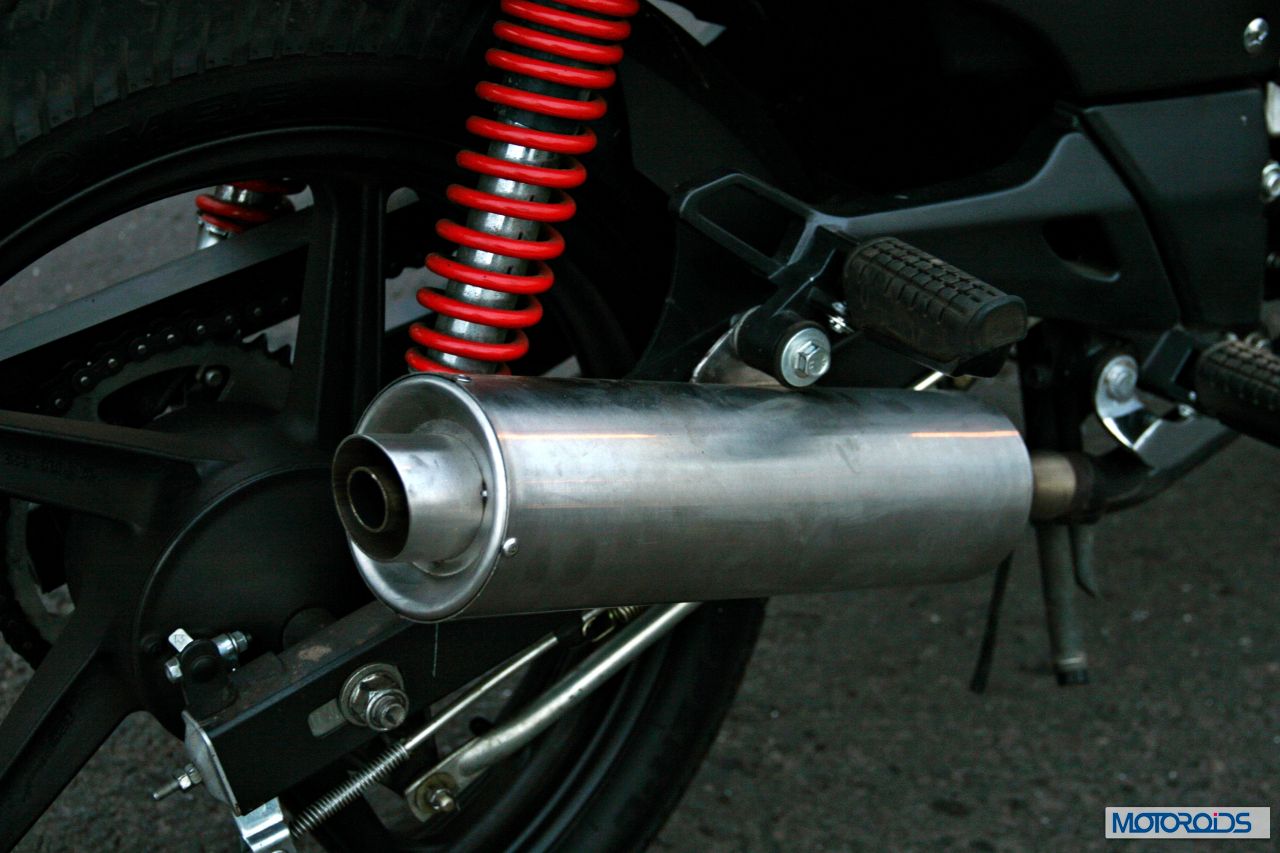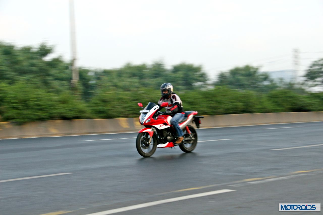 Though the motorcycle felt rev-happy, it didn’t feel as quick off the block as the stock Hero Karizma R would. But once past the 6000 rpm – it displayed a sense of rush all the way to its claimed 12000 rpm rev limit. Though the tacho on a stock Karizma-R is marked till 10,000 rpm, it was fun to see the needle swing past on the modded version. And the way the front lifted mildly on every shift, we couldn’t help but keep it pinned at the end of the rev range.