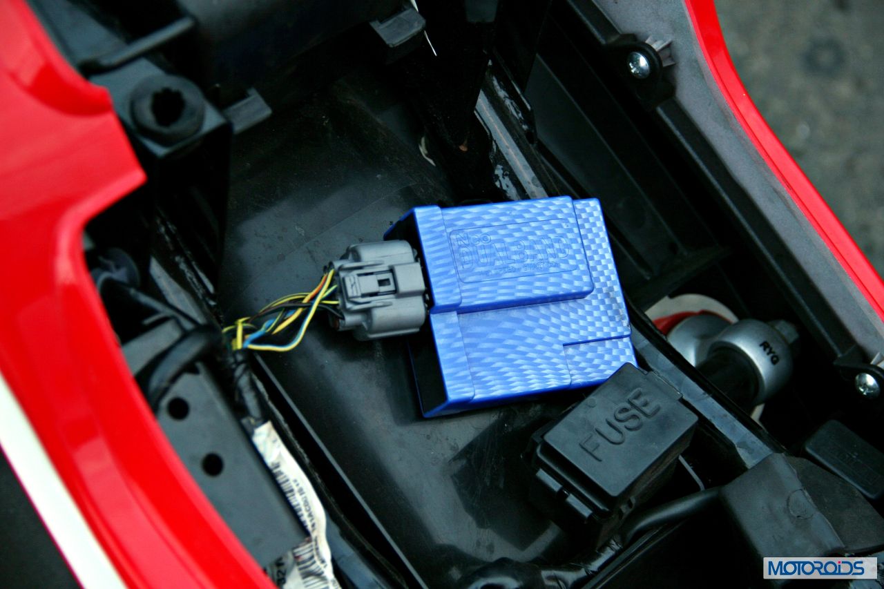 The difference here might seem marginal, but give it a longer stretch and the Fortpoint Racing Karizma R would break away from the stock Karizma-R with a considerably higher speed in every gear. The motorcycle despite the modifications feels smooth and it’s only beyond 9000 rpm that the vibes start to build up at the foot-pegs.
