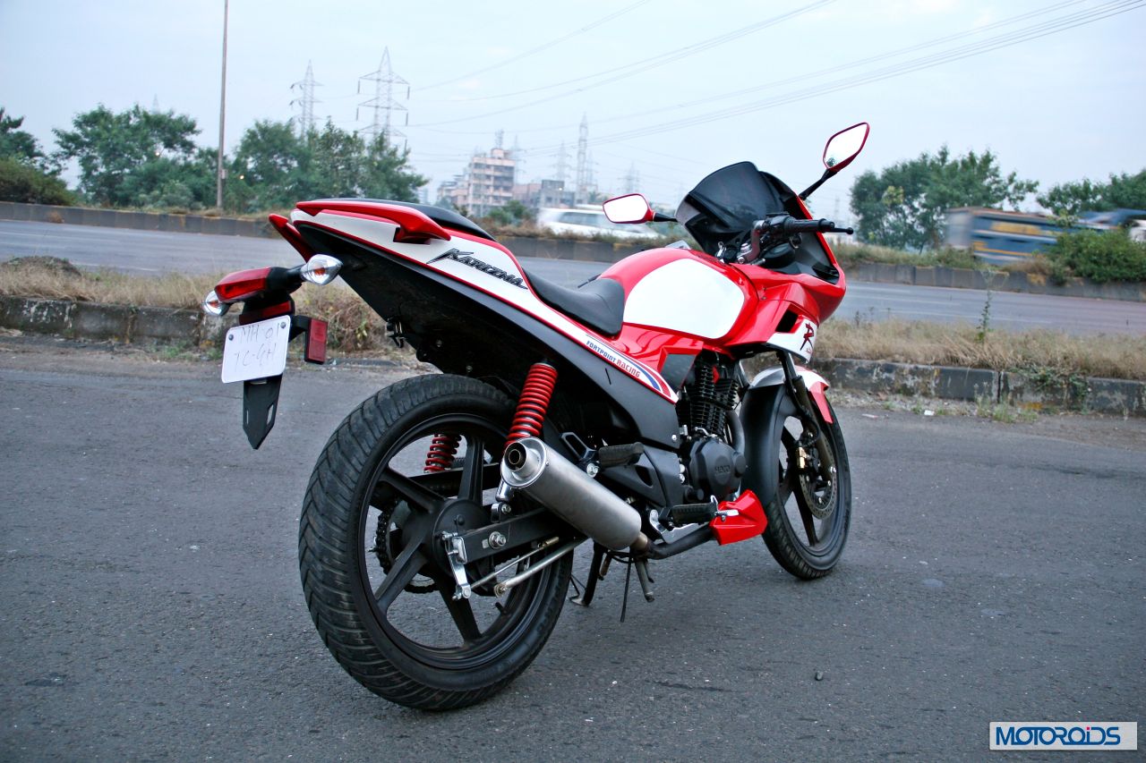 Though the motorcycle felt rev-happy, it didn’t feel as quick off the block as the stock Hero Karizma R would. But once past the 6000 rpm – it displayed a sense of rush all the way to its claimed 12000 rpm rev limit. Though the tacho on a stock Karizma-R is marked till 10,000 rpm, it was fun to see the needle swing past on the modded version. And the way the front lifted mildly on every shift, we couldn’t help but keep it pinned at the end of the rev range.