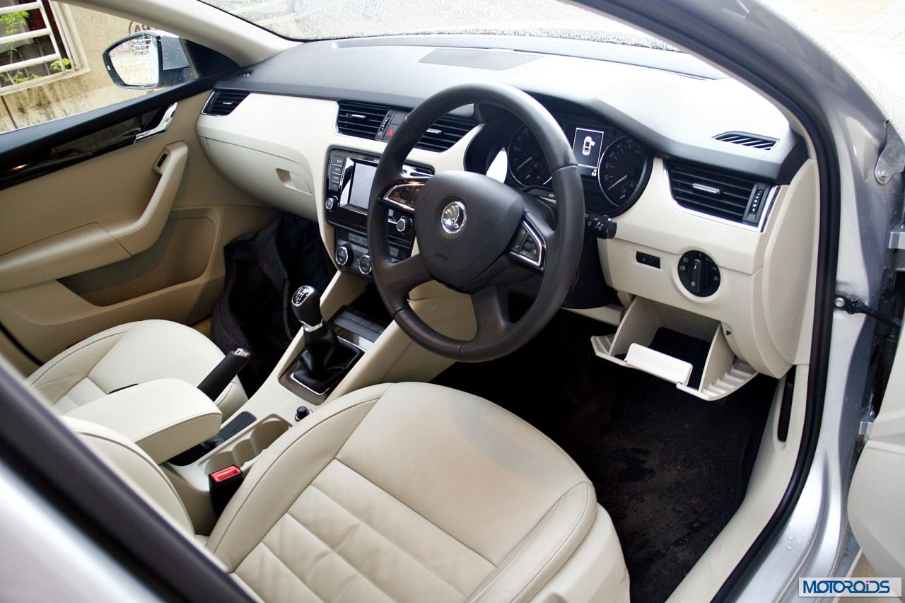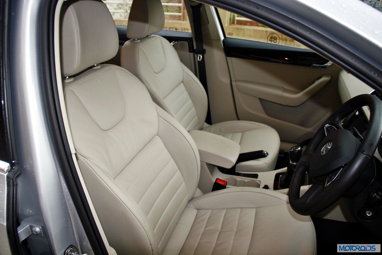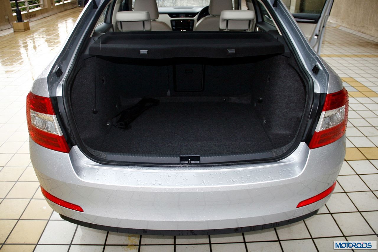 Skoda have provided ample cubbyholes to makes sure you never run short of spaces to pop odds and ends in. There is a glares holder up front, along with a big storage space under the front central armrest. The door pockets have enough space to store big water bottles and there are cup-holders in the rear central armrest too. The armrest can be dropped completely to access the big boot directly from the back seat. The transmission tunnel does interfere with the leg-space of the fifth passenger in the backseat though. Also, the rear seat doesn’t have a head rest for the middle passenger.