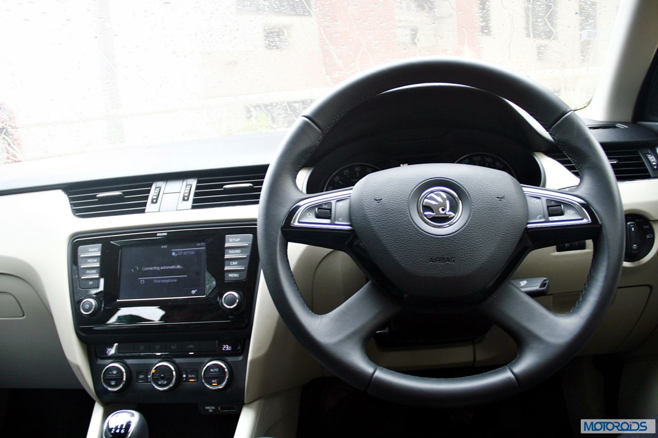 The bigger dimensions of the car are evident inside the cabin as well. The interior is much airier and more spacious then the outgoing version. The premium looking fuselage is feature laden and built with quality materials. The dashboard, the switches and the materials are reminiscent of premium cars from German carmakers. The new Octavia also features a brand new four spoke multi function leather wrapped steering wheel which is tilt and telescopically adjustable.
