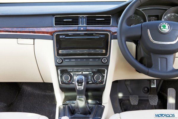 Apart from the DSG which is conspicuous by absence, there are other discreet omissions which have done their bit to take the price of the Ambition variant down. Skoda have taken out the six-CD changer, made redundant of late by the emergence of the USB audio port in modern cars. Unfortunately, no variant of Superb supports USBs, and so is the case with the lower priced Ambition variant as well. What remains is the Skoda Swing audio player with single CD player functionality, and an Aux-in port. Even the data card reader available in the Elegance variant is not available here. No Bluetooth either, if you were wondering. The 6.5 inch LCD TFT Colour touch screen too has been taken away in favor of buttons to control all functions.