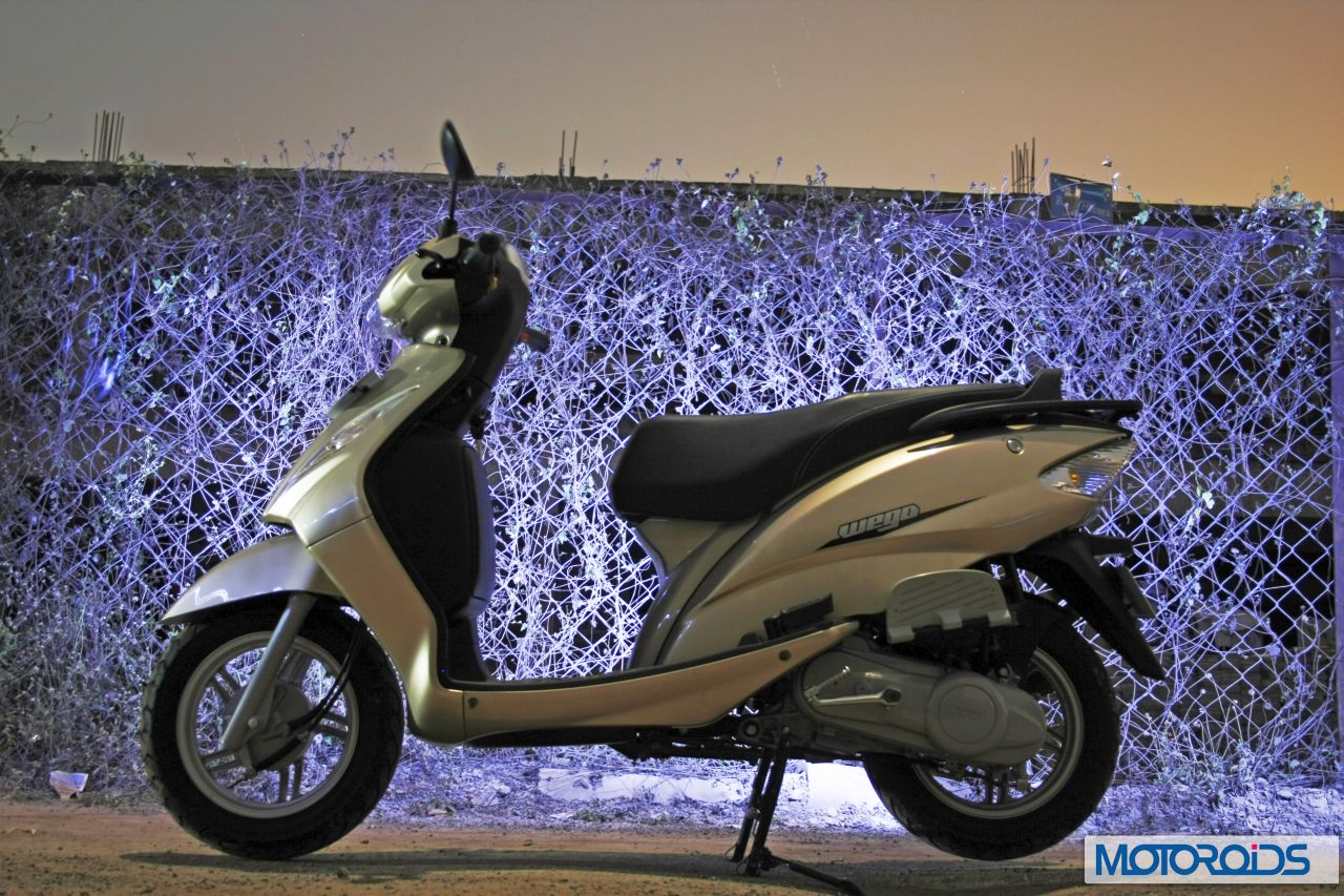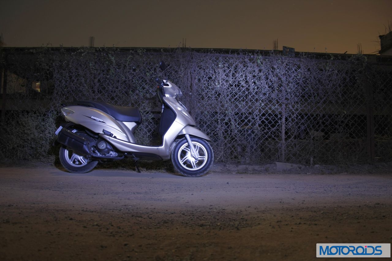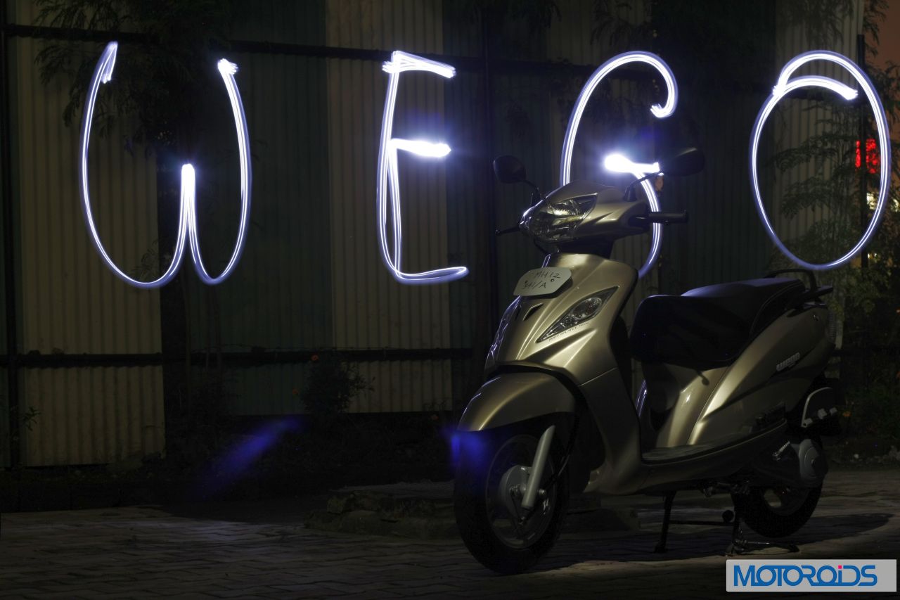 At Rs 42,000 ex-showroom, the Wego is a formidable opponent of the Aviator, and trumps its prime competitor on almost every front (including price) except refinment. Moreover, the Wego can lay a much stronger claim on ‘the Best Unisex Scooter’ crown than its winged nemesis. TVS have definitely worked very hard on getting this scoot right and their efforts are reflected clearly in the brilliance of the Wego. As we said at the outset, it’s so brilliant, we had to shoot it in the night.