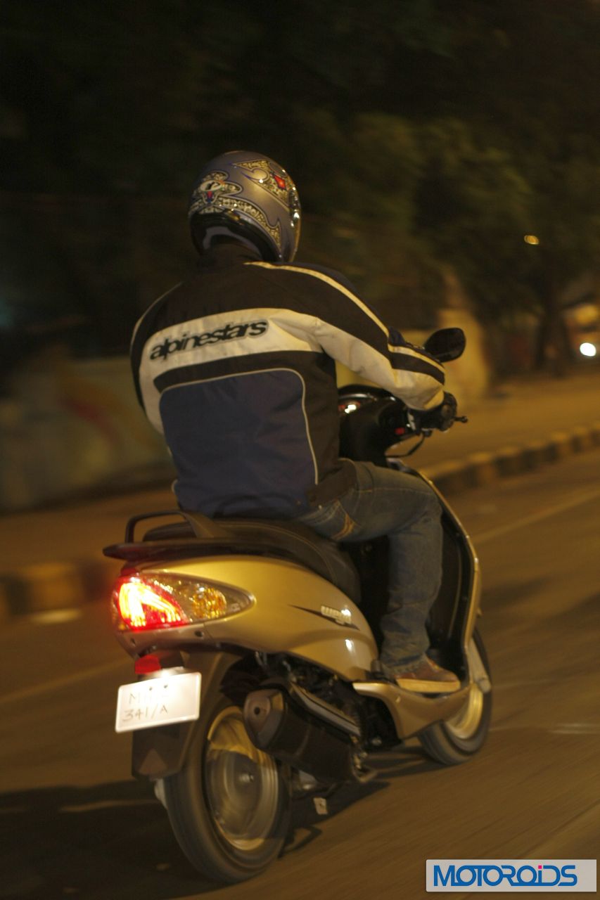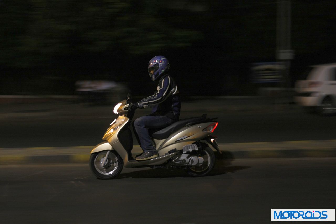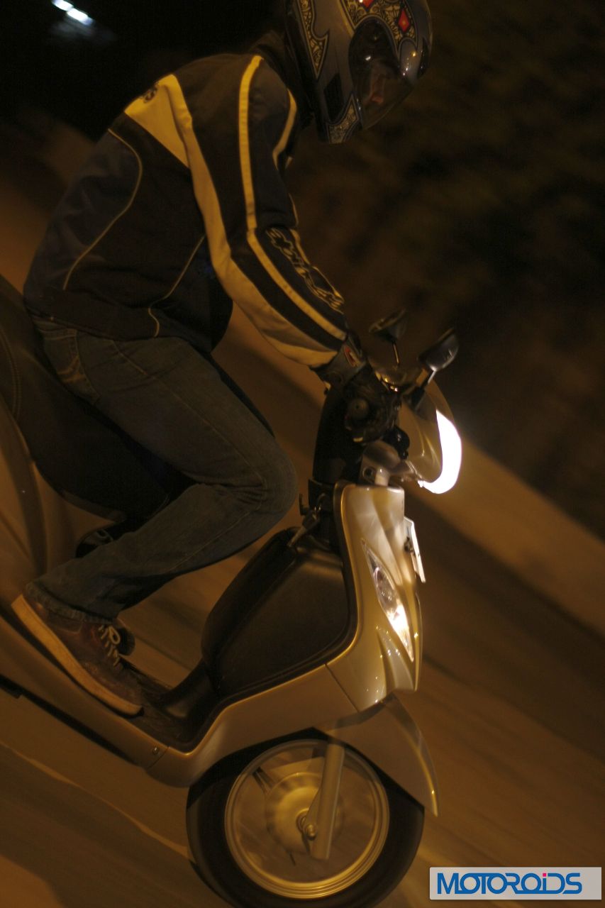 At Rs 42,000 ex-showroom, the Wego is a formidable opponent of the Aviator, and trumps its prime competitor on almost every front (including price) except refinment. Moreover, the Wego can lay a much stronger claim on ‘the Best Unisex Scooter’ crown than its winged nemesis. TVS have definitely worked very hard on getting this scoot right and their efforts are reflected clearly in the brilliance of the Wego. As we said at the outset, it’s so brilliant, we had to shoot it in the night.