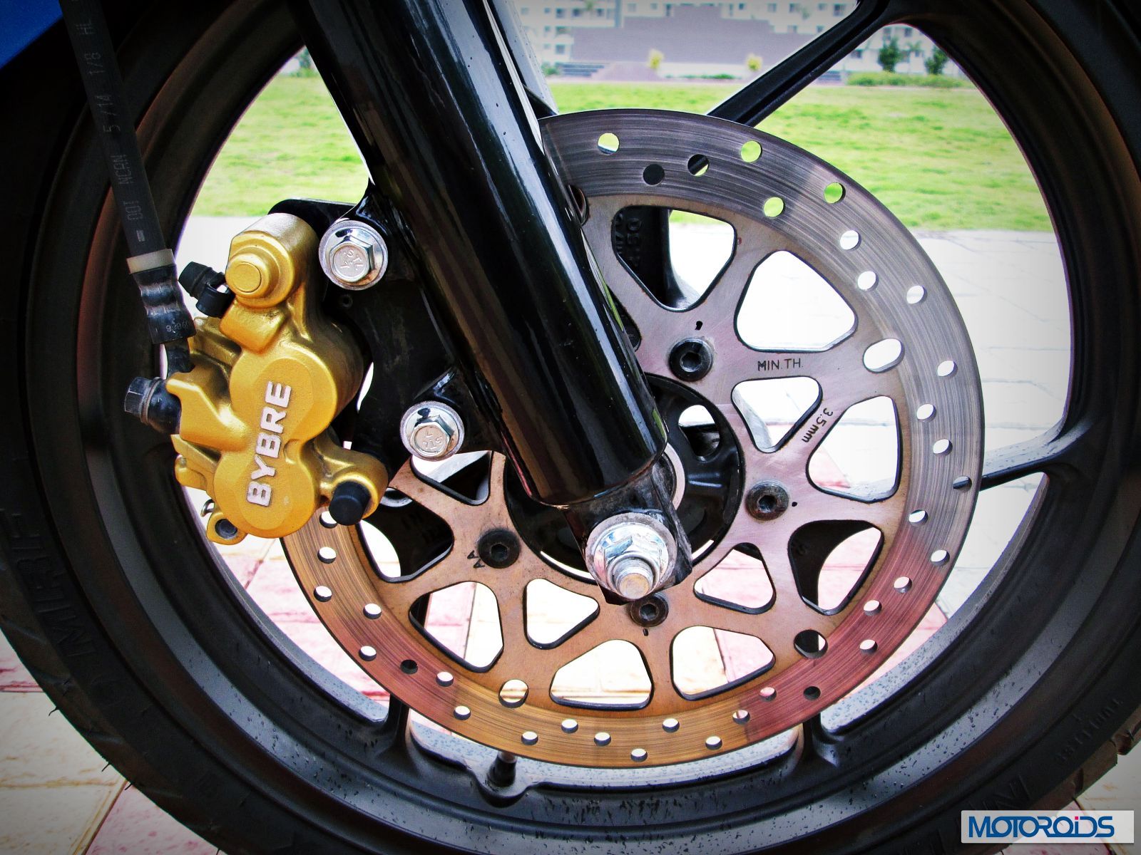 The front disc by Bybre lacks initial bite but then offers progressive braking throughout