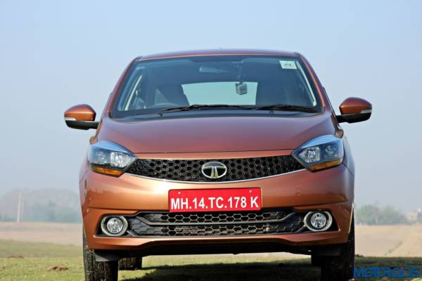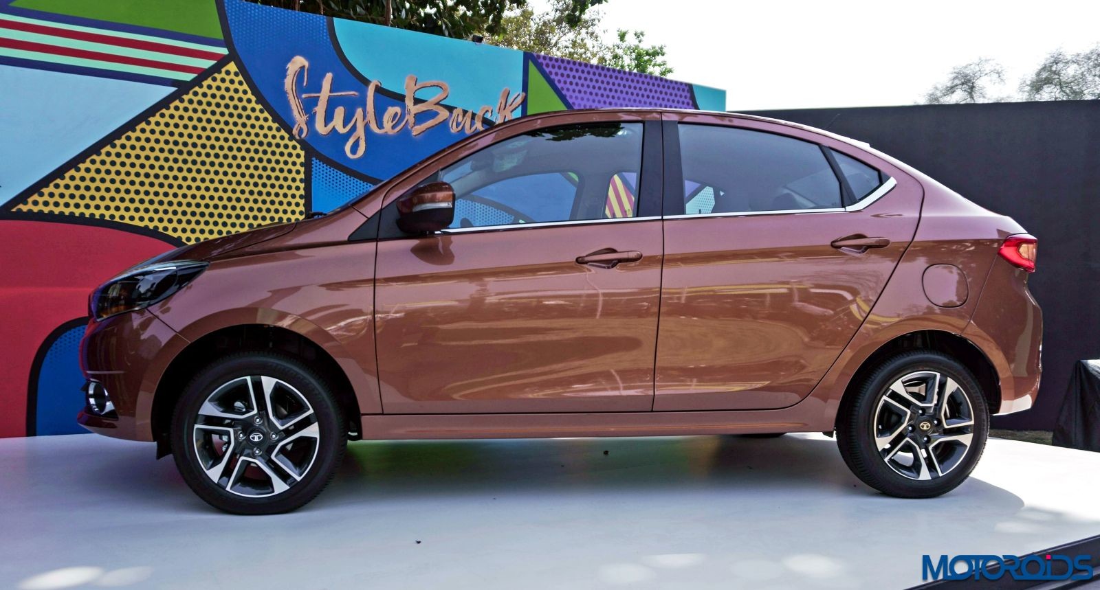 The front section is same as the Tata Tiago, which too is distinct, unique and refreshing in a crowd of mostly staid looking small sedans. Front grille features the Tata smiley face design with the lower lip lined with a chrome strip, and hexagonal design with double edges (which is different from the single edged Tiago grille) merging neatly into the large headlamps.