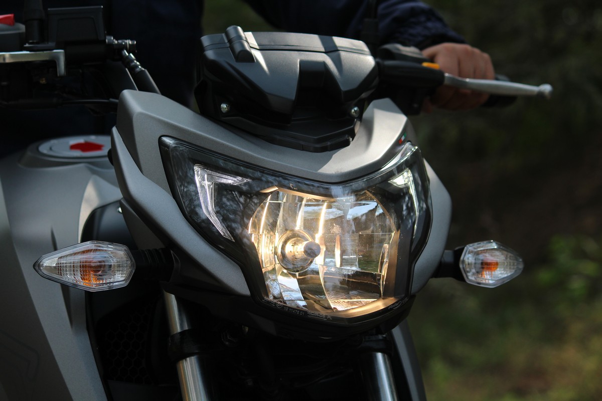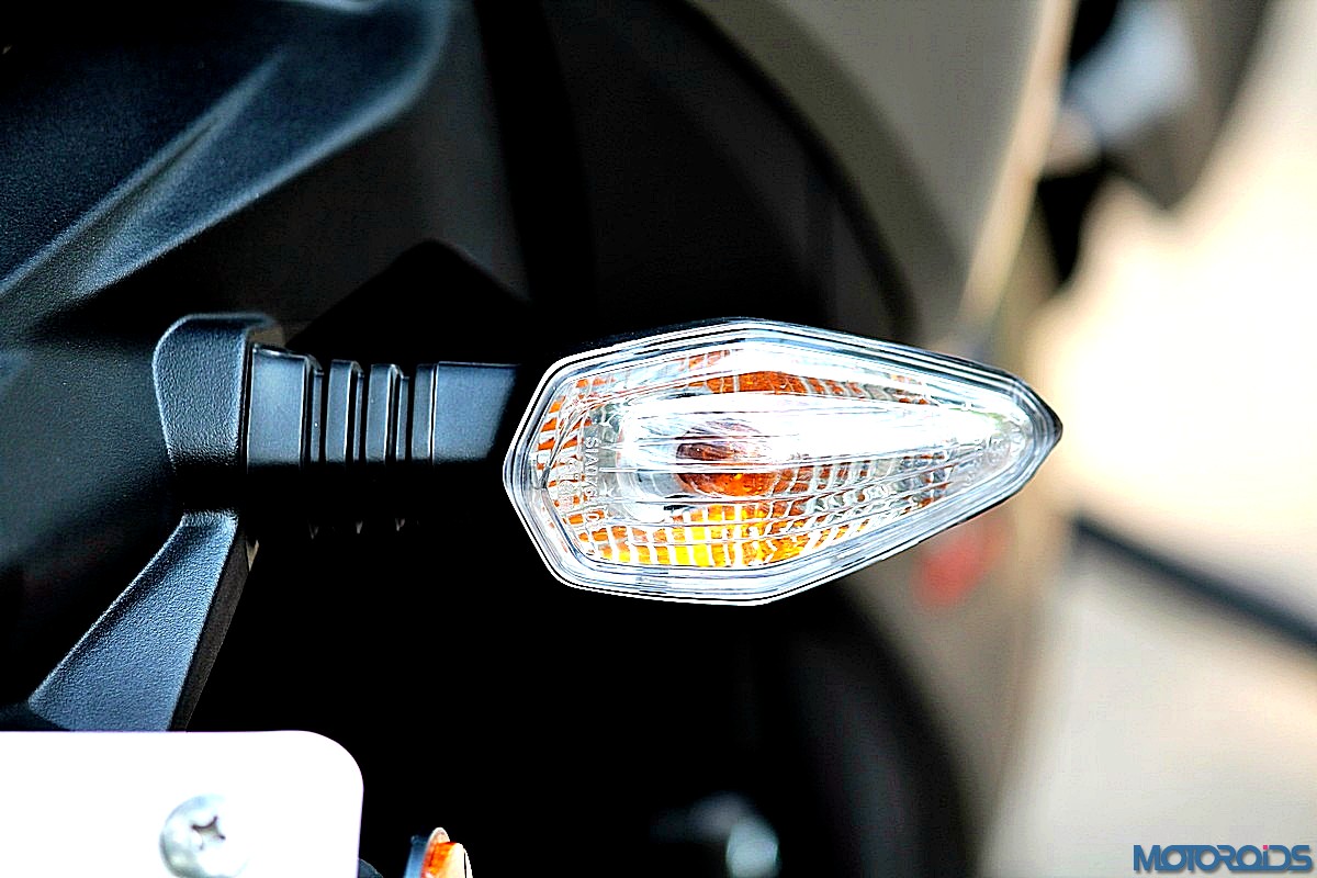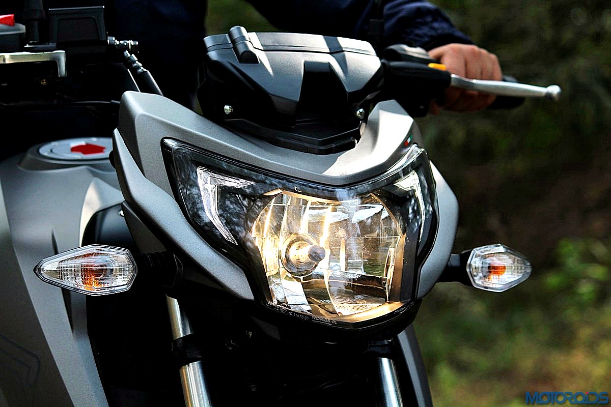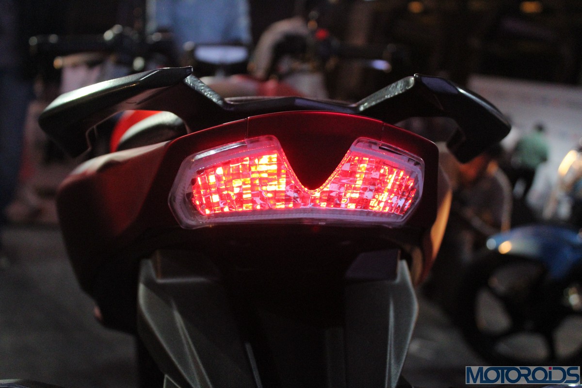 The insectoid headed, rather compact front piece wears a smiley headlamp cluster that’s highlighted by twin, C-shaped LED strokes at the edges. Blacked out detailing inside the headlamp cluster looks murderously cool. To keep perspectives intact, the indicators are tiny tots too.