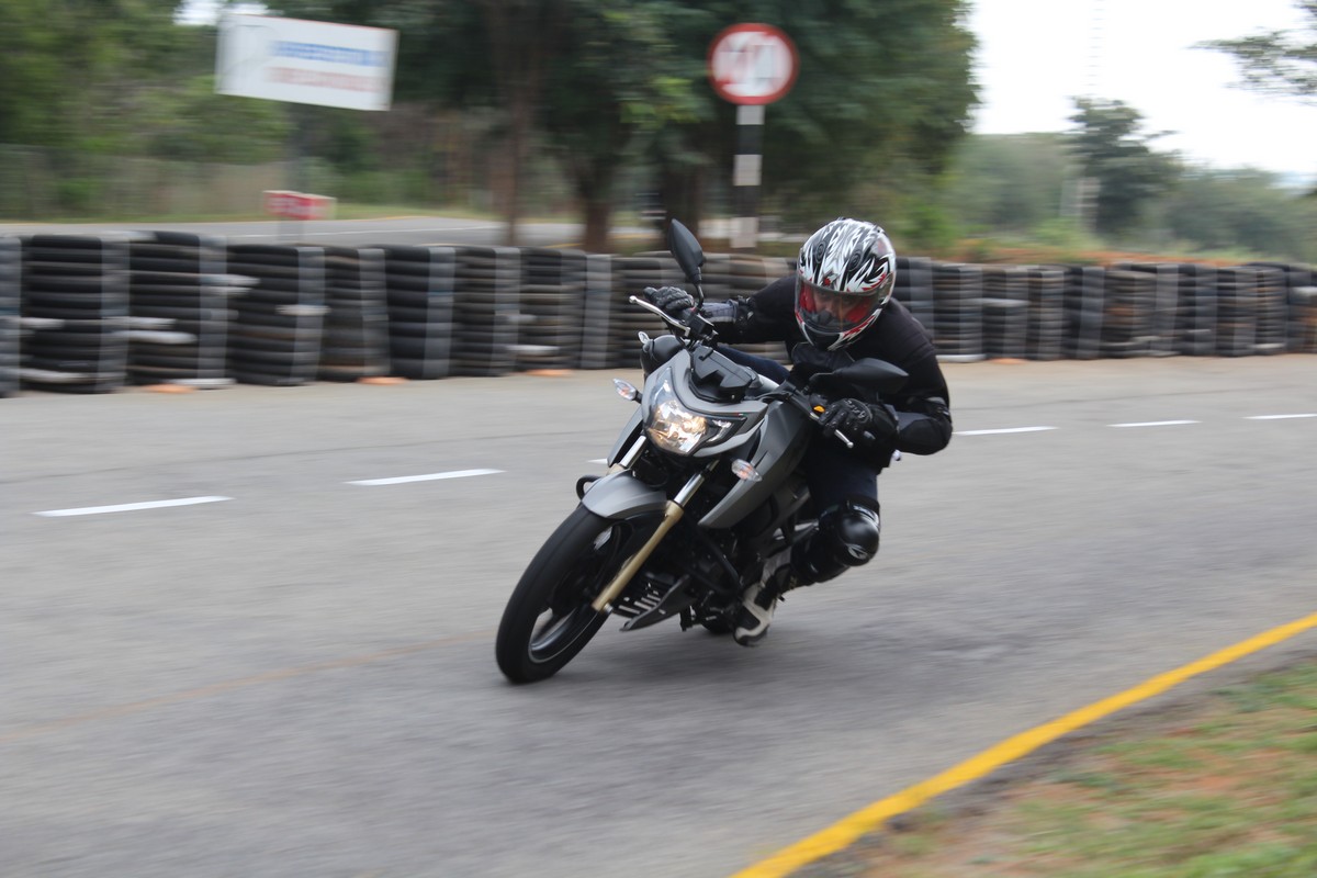 The stiff chassis is well balanced, and in spite of the irregular surface on the curves of the test track, the new TVS comfortably held its line, inducing me to push harder and instilling confidence. Grip from those tires is immense, and though the undulations managed to coax the rubber to lose grip, it was back in a wink, thus never letting the Apache 200 veer off the intended line around the curve.