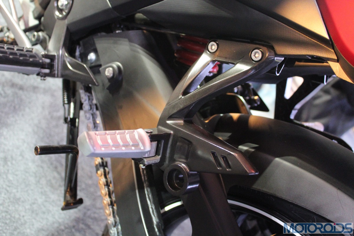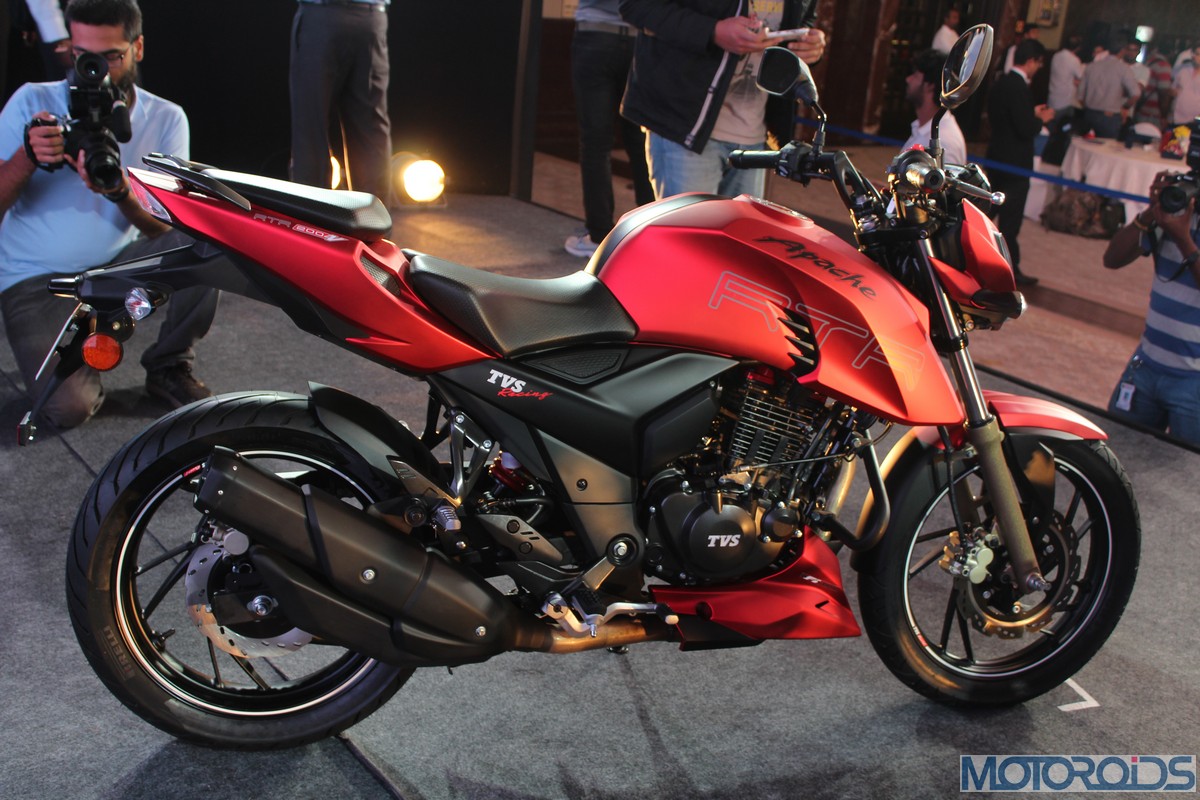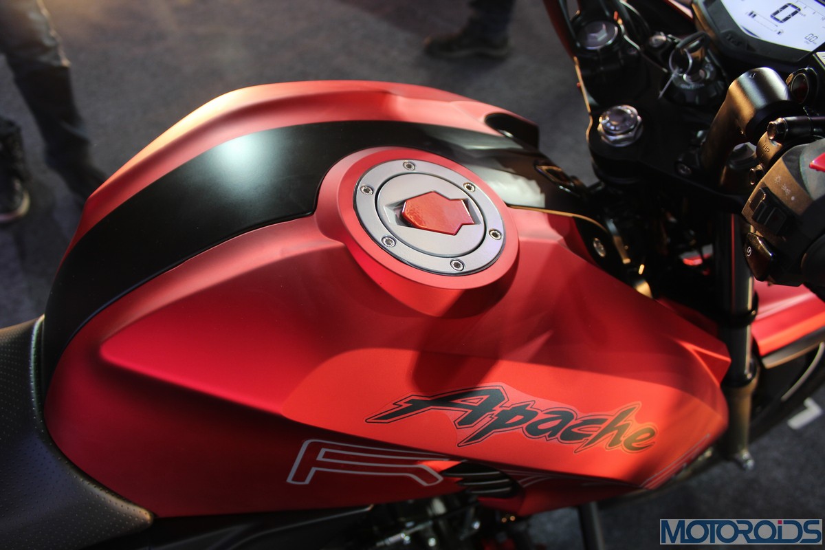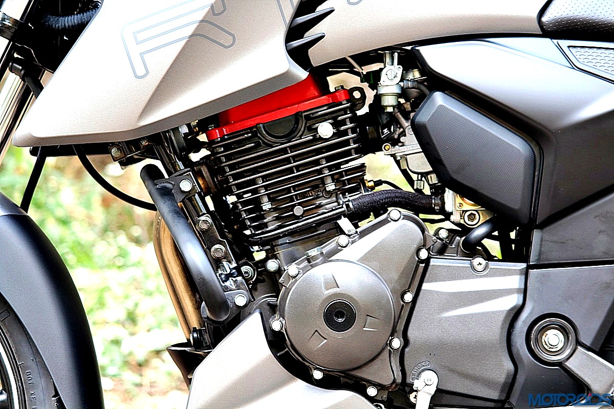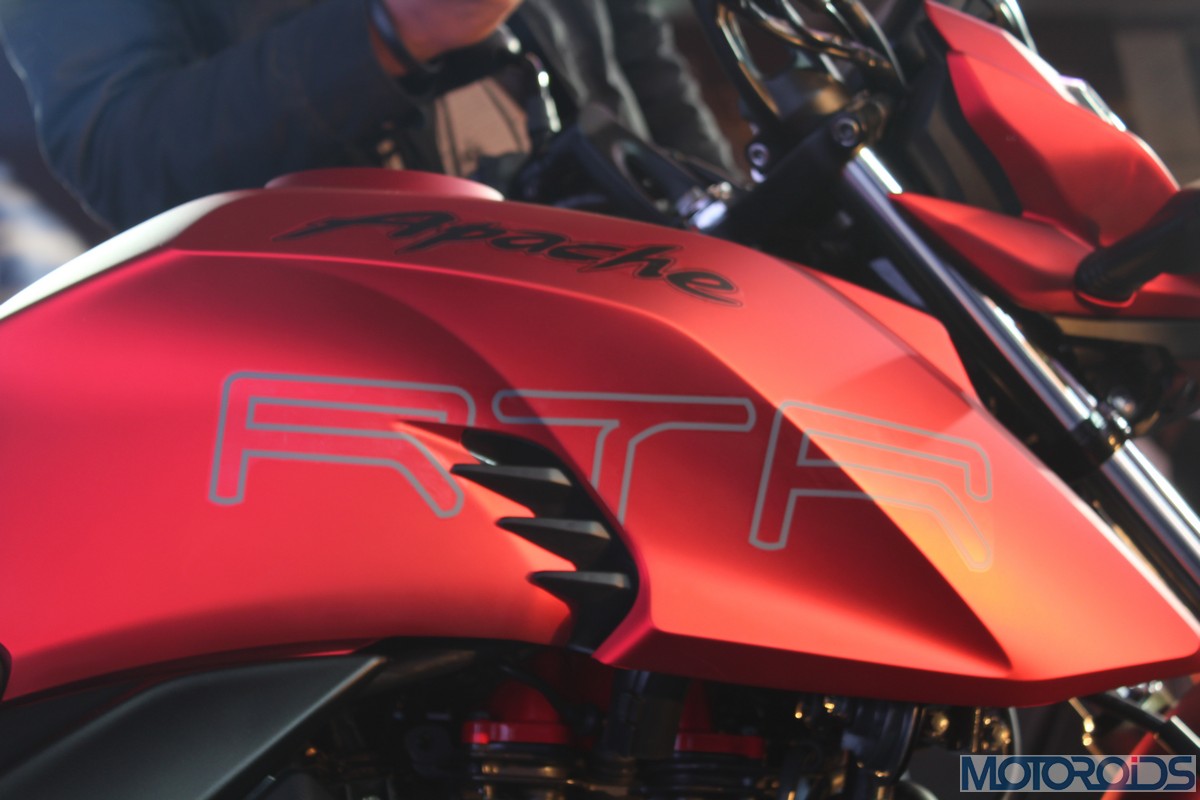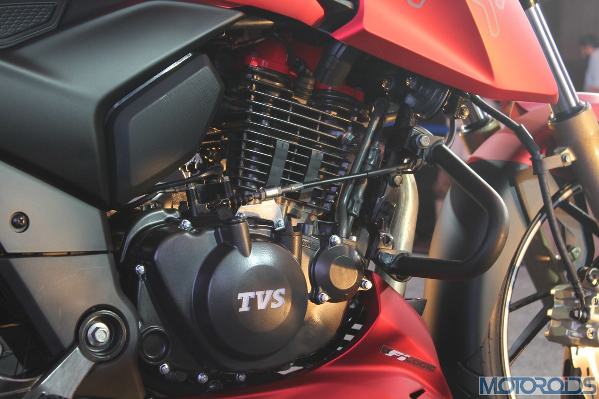 The power is pushed to the rear wheel by a 5-speed transmission. The engine is cradled inside a completely new frame that uses the engine as a stressed member, à la KTM Duke 200/Bajaj Pulsar 200 NS/RS. Over the regular Apache, this new frame, claim TVS, comes with improved torsional and lateral stiffness.