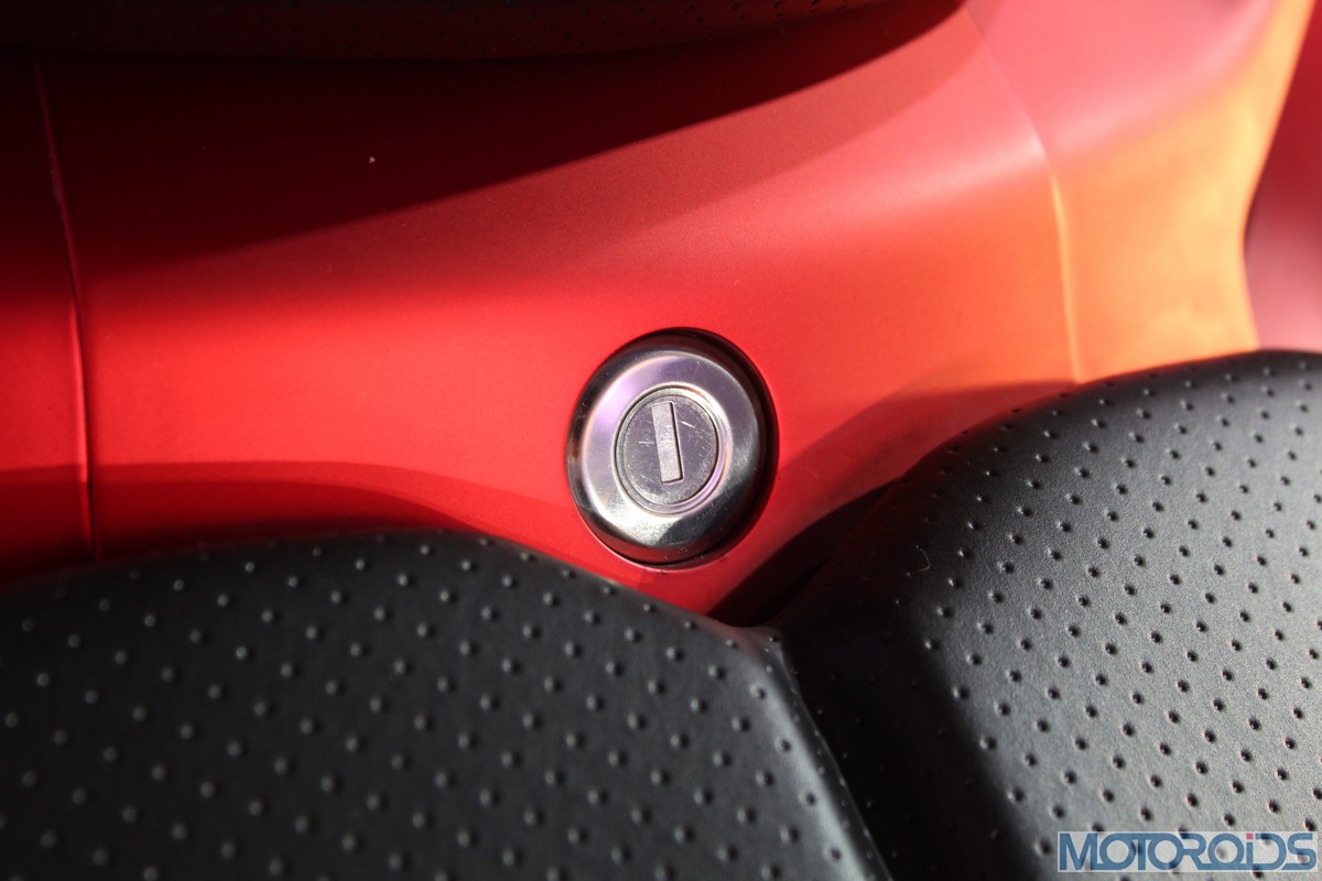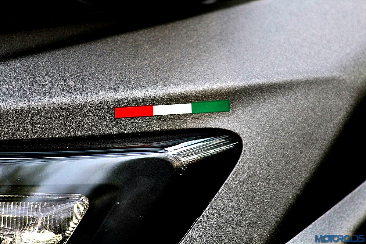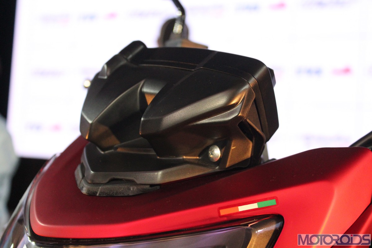 The front piece is crowned by an exposed instrument cluster, giving the notion that the latter is “floating”. That said, it somehow feels that there a part of two missing in the area. If you haven’t noticed already, the Indian tri-color is proudly stuck to the corner.