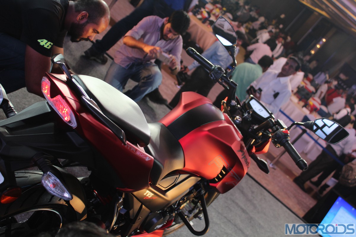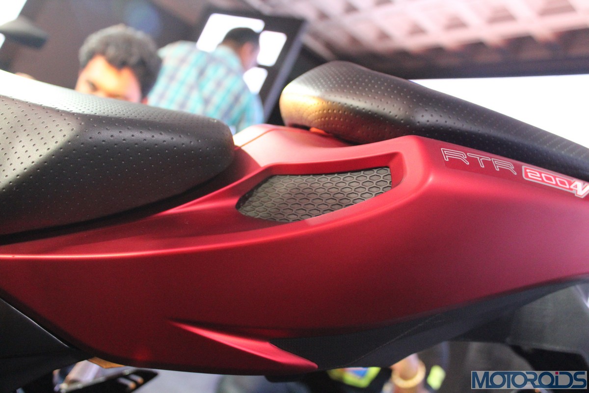 The chrome dipped levers look awesome; familiar TVS switch gear feels tactile to use, reeks of good quality too. Everything on the bike seemed to really well put together; with the build quality being one of the best we’ve seen so far on a TVS two-wheeler. Interestingly, the new Apache’s color palette comprises solely of matte finished shades, comprising of yellow, red, white, grey and black.