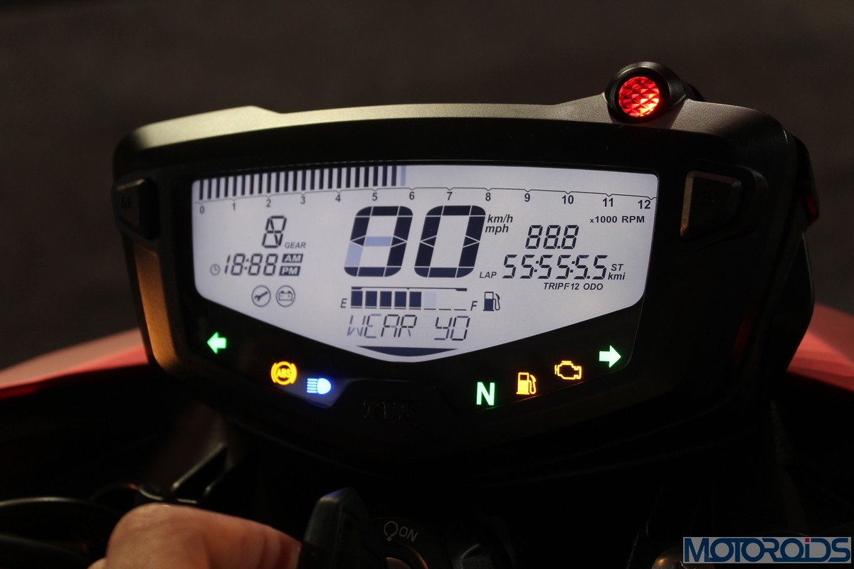 Banging through the gears is fun, provided you up shift below 7,500 rpm. Keep twisting the throttle further and performance wanes as the power and torque curves promise. Though it revs till 11,000 rpm, the engine becomes a screaming block of agony by then, clearly out of its comfort zone. As for top speed, we managed to hit a speedometer indicated 123 km/h on the relatively short straight of the test track. Though the claimed top speed is 129 km/h, TVS insists that it’ll do more, and eventually top out at 144 km/h; given a long enough stretch of tarmac.