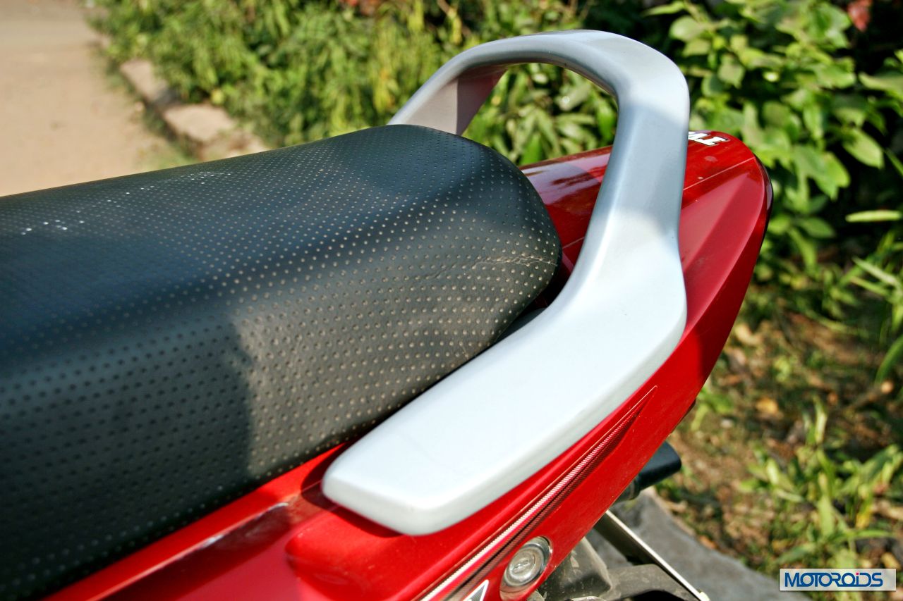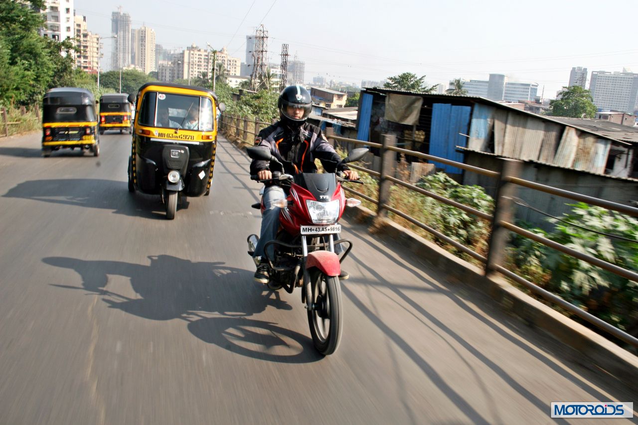 • On the braking front, the motorcycle left us crying for more. Though effective enough, the 130mm front and 110mm rear drum brake setup felt somewhat spongy, with the rear locking up at the drop of a hat. A disc up front would have made life a little better.