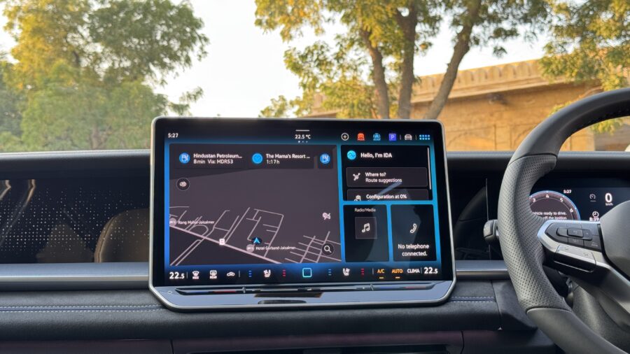 The cabin is premium. The 15-inch touchscreen is oriented towards the driver and looks good. Interaction is smooth, though the touch-only AC controls remain a small annoyance — physical buttons feel like a superior idea. The 360-degree camera is useful, but its resolution could be sharper — a detail you notice in this segment.