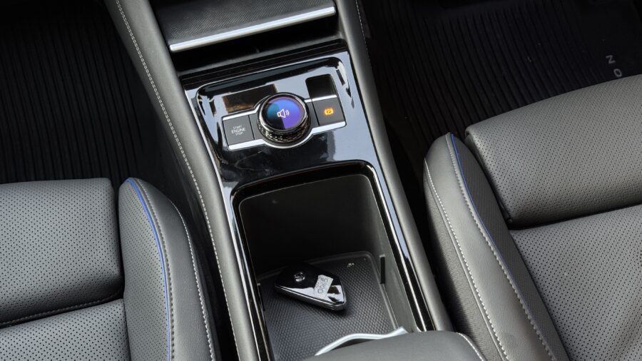 Seats are comfortable, with extendable under-thigh support and genuine massage function — not just air bladders pretending to work. Acoustic glass keeps NVH well under control even at triple digits.