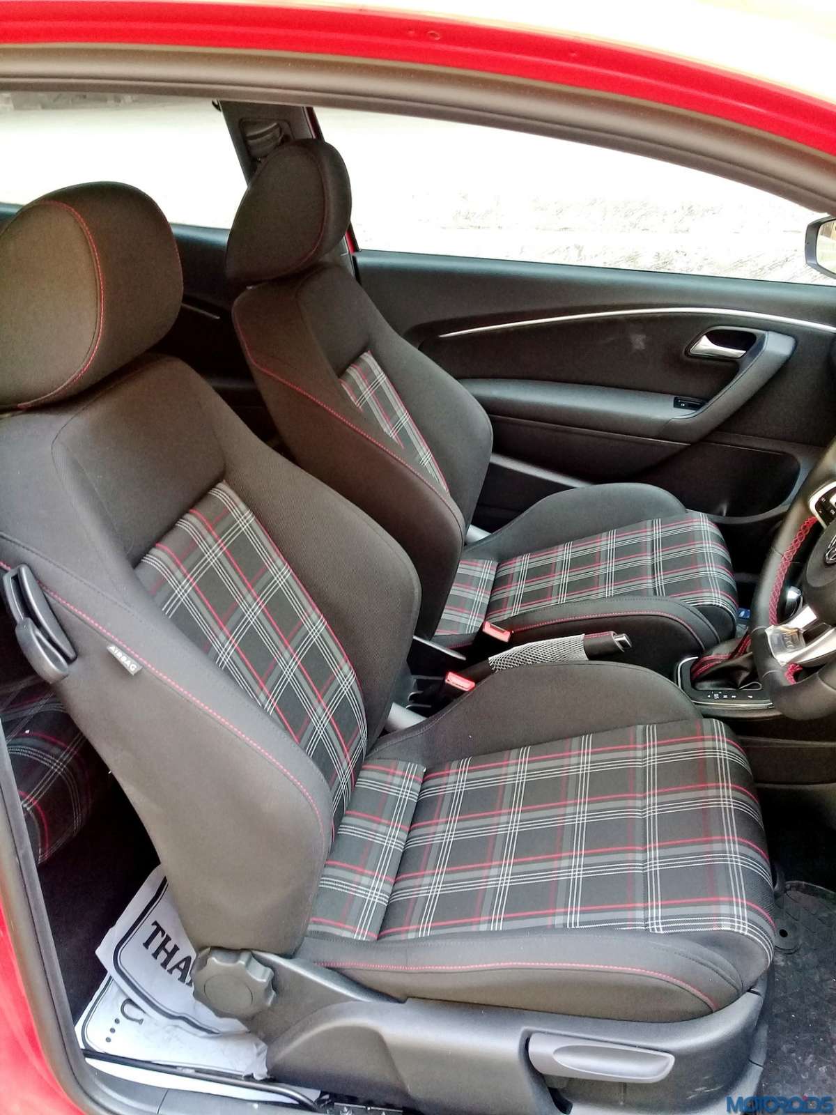 These GTI-specific ‘sports seats’ are awesome. You sit lower than you do in a standard Polo, and the enlarged bolsters hug you like the girlfriend that you never had. They do come with height adjustment and even get drawers underneath, but there’s no electrical adjust-ability.